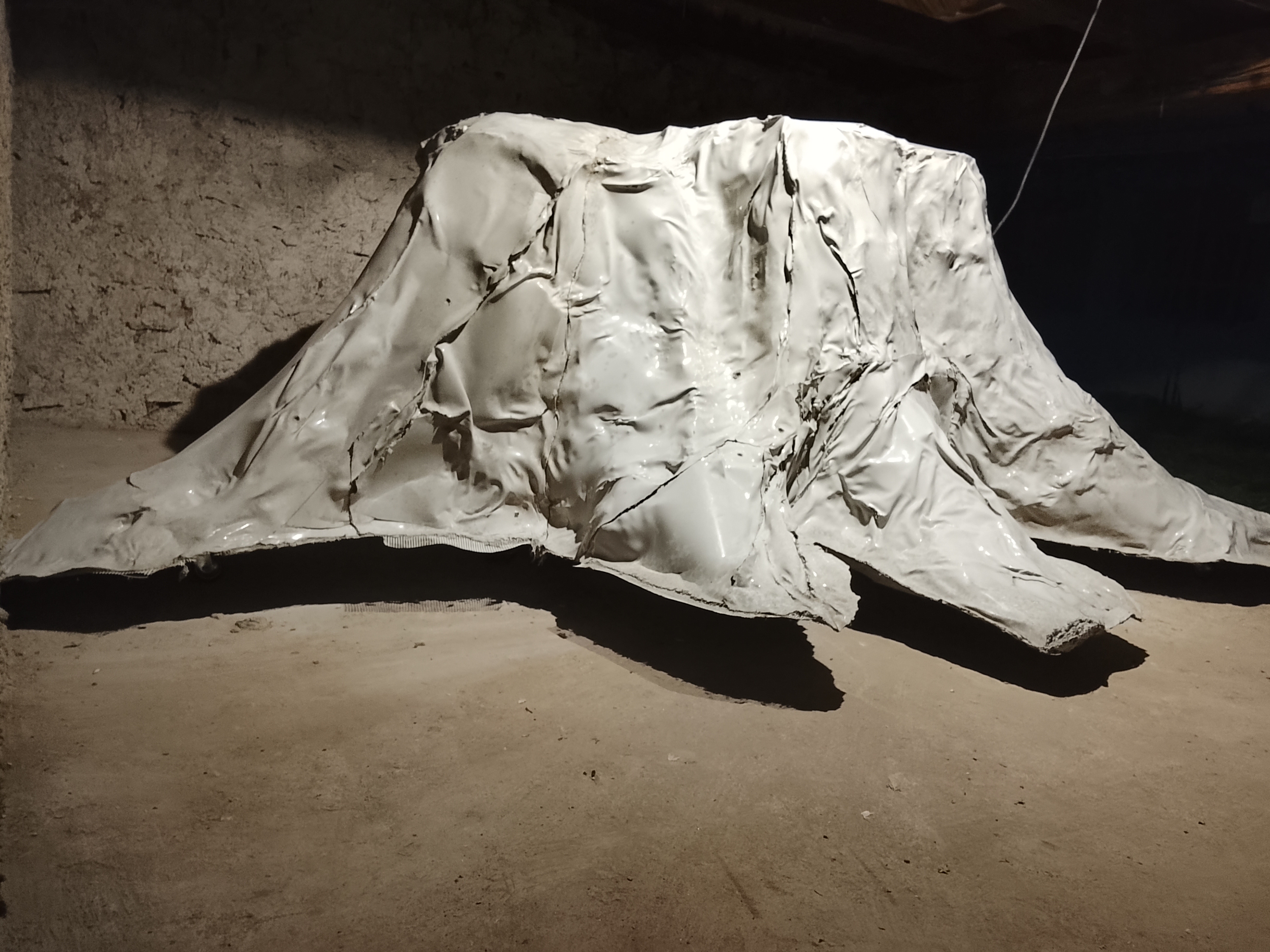 Nenadväzuje, toto je vlastne prvý celý odliatok pňa lipy z Trebišovského parku. Začal som ho robiť počas workshopu vizuálneho umenia Park Camp, ktorý organizuje Koniareň a najprv vznikol Sarkofág. Bol to peň zaformovaný vo fólii technikou nahrievania teplovzdušnou pištoľou. Diváci videli zabalený strom, sarkofág, schránku, ktorá zaformovaním zachovávala rozpadajúce sa drevo spolu s drevokaznými hríbami. Neskôr na výstavu Trebišovské monumenty som začal do formy striekať cementovú hmotu. Využil som skúsenosť z diela Pamätníky stromov, ktorý som dávnejšie robil v Handlovej, kde chceli vypíliť veľa stromov v parku. Tam boli betónové pomníky stromov malé. Chcel som skúsiť tento netradičný materiál, keďže forma je jednoduchá, nemá kapslu. Počas rezidencie v Trebišove som začal striekať, ale samotný materiál formu dostatočne nevystužil, takže nakoniec som to musel spevňovať drevom zvonka a vystavil som proces - prvý z troch dielov v podobe otočeného odliatku. Teraz som tri časti spojil a peň je tak zachovaný v podobe z roku 2020. Dnes už zrejme vyzerá inak. Nerobím presnú kópiu, zaujíma ma celkový tvar, taká spomienka na ten strom aj s nedokonalosťami tejto techniky. Na Park Campe chodili okolo obyvatelia a rozprávali príbehy spojené s týmto stromom. Moja socha je skôr takou spomienkou, zvečnením tej lipy, teda toho, čo z nej zostalo.